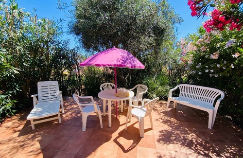 Casa Ibiscus is situated in Funtana Meiga, perched on a hill from which you can admire the beautiful coastline from Capo San Marco to Turr'e Seu. It's divided into two levels: two double bedrooms, two single bedrooms, two bathrooms, a large garden with seating/dining area on the lower level and living room with TV, kitchen, a patio with garden and a terrace with dining table on the upper level. This property also includes outdoor shower, barbecue, washing machine, fans and mosquito nets. Casa Ibiscus is located just 300 metres from the sea. Free street parking is available by the property.