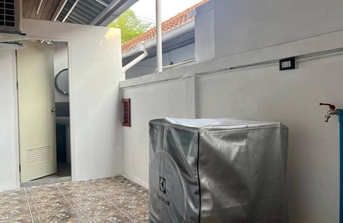 Es una casa de un solo nivel con dos dormitorios más 2 baños (consulte el diseño de cada baño ubicado, para que no haya malentendidos sobre el diseño del baño dentro de esta casa individual) con aproximadamente 120 metros cuadrados de área utilizable (32 metros cuadrados de terreno) con aire fresco en el jardín con sillas y sombrilla ubicado frente a la casa. Esta terraza es ideal para tomar un café por la mañana y por la noche. Wi-Fi de fibra óptica privado gratuito con paquete de 500/500 Mbps, lavadora/secadora privada, microondas, tostadora, cocina de gas, refrigerador grande, utensilios de cocina y vajilla. Hemos dispuesto una mesa y una silla de trabajo para que disfrutes trabajando en línea.