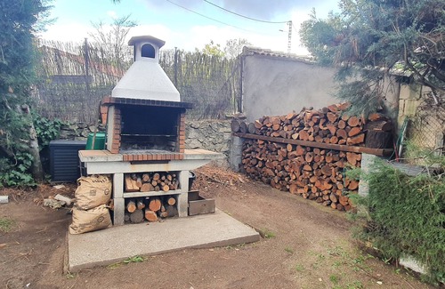 El amplio jardín tiene grandes árboles y dispone de barbacoa y gran paella, para poder comer y pasar el día al aire libre.