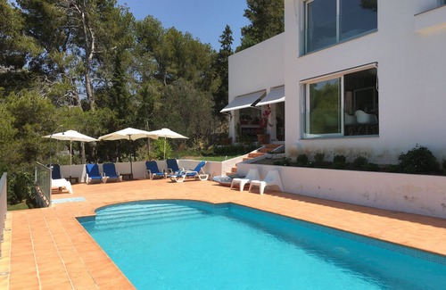The south-facing porch and pool terrace with loungers and parasols ensure you have everything you need for a perfect stay.
