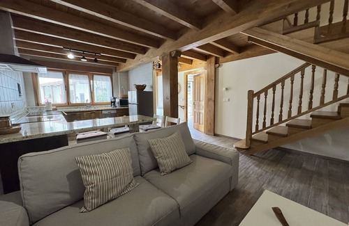En el piso superior, la casa ofrece dos modernos baños completos, uno de ellos en suit y tres dormitorios bien decorados. La presencia de armarios empotrados proporciona espacio de almacenamiento adicional, mientras que la distribución de las habitaciones ofrece privacidad para los huéspedes. La cercanía a las ciudades principales como Oviedo y Gijón es una ventaja significativa, permitiendo a los visitantes explorar fácilmente las atracciones urbanas y culturales de la región