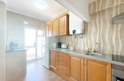El primer dormitorio está equipado con una cama doble, mientras que el segundo dormitorio cuenta con dos camas individuales. La sala de estar está amueblada con un sofá, un televisor con canales por cable y Wi-Fi. La cocina está completamente equipada con todos los electrodomésticos necesarios, incluyendo mesa y sillas para comer, cocina, horno, frigorífico, microondas, extractor, batidora de mano, cafetera, tostadora, plancha y tabla de planchar.