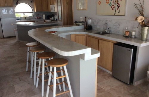 Easy Street es una casa de tres dormitorios y dos baños en la playa en Las Conchas, sección 8, lote 8, a media milla de la puerta de guardia. El dormitorio principal da al Mar de Cortés con acceso al patio a través de una puerta corredera. El maestro ofrece una cama king size con baño privado y vestidor. El dormitorio número dos está en el lado opuesto de la casa, tiene una cama king size y también está frente al Mar de Cortés. Comparte un baño con el dormitorio número tres que tiene una cama matrimonial y dos camas individuales. El punto focal de la casa es la gran sala con su cocina, comedor y sala de estar. Y no olvide el bar húmedo con vistas directas al océano. Easy Street está equipado con todas las comodidades modernas; aire acondicionado / calefacción, lavavajillas, TV de pantalla plana con Direct TV, lavadora y secadora, microondas, estufa y horno y un garaje doble de gran tamaño. WIFI es gratis. Todo lo necesario para la cocina gourmet está disponible en la cocina; ollas y sartenes, platos, platos y utensilios para servir. Afuera se encuentra un patio cerrado en el lado de la calle y un gran patio y terraza en el lado del océano. Una barbacoa de carbón está disponible en el cobertizo de almacenamiento al lado de la casa, por favor traiga su propio carbón. El lado de la playa tiene un pozo de fuego; Hay madera disponible en la calle que entra en Las Conchas. Trae un registro de presto o dos para encender tu fuego. La casa tiene camas para ocho personas. No permitimos dormir en los sofás de la gran sala.