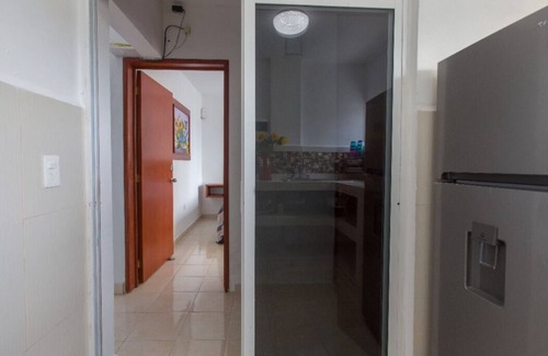 Es un departamento con 4 cuartos, dos con camas matrimoniales y dos con cama individuales; dos baños con ducha, cocina, alberca, camastros, parrilla.