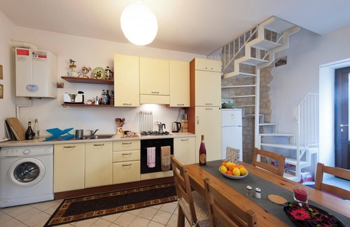 En el salón encontrará la chimenea con un sofá de 3 plazas, dos sillones, TV de pantalla plana (con canales italianos) y un reproductor de DVD con una gran selección de DVD familiares. Una estantería con guías, libros de cocina, libros locales, novelas, mapas, folletos y libros de visitas. Un sistema de acoplamiento para iPod también un reproductor de CD con radio, CD y juegos de mesa. Router de wifi. Las escaleras conducen al primer piso.