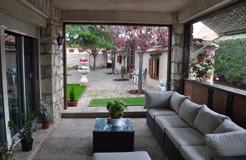 CASA RURAL 4* VILLA PEDRAZA, Es una bonita casa de campo con todas las comodidades , un amplio jardin con zona de solarium y cesped con tumbonas y sombrillas , zona de barbacoa con mesas y sillas para disfrutar de cenas y comidas en el exterior, tambien disponemos de un porche acristalado con salida y vistas al jardin con zona de descanso y zona de comedor.