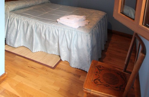 Casa rural decorada con muebles rústicos. La casa tiene: comedor-cocina totalmente equipada (menaje y utensilios de cocina), tv, nevera, microondas. Tres dormitorios con cama doble (135 cm) y un dormitorio con dos camas individuales y cuarto de baño.