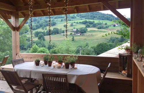 Cuando llegue a su destino, ¡le espera una vista impresionante! La casa rural está situada en la montaña y le ofrece una estancia de aire puro a su gusto. La proximidad de los caminos marcados por el club vosgien le permitirá descubrir los magníficos paisajes de las montañas de los Vosgos, mientras hace una escala gastronómica en una posada de granja. Los aficionados a la bicicleta o los patines pueden unirse a la vía verde de Hautes-Vosges desde una distancia de 53 km (2 km). Paso de Bussang a 10 km. Ballon d'Alsace a media hora de distancia. y el Balón de Alsacia. Para descubrir en Fresse: la Chapelle des Vés, un lugar importante en la historia de FRESSE, el estanque de Frac, la cascada Longeligooutte, la Croix de Couard, el puente de piedra seca del siglo XVIII... Alsacia está a media hora en coche. Deportes de invierno: estación Larcenaire en Bussang a 14 km. Estación de esquí Rouge Gazon en Saint-Maurice-sur-Moselle o las estaciones de Bresse. Al borde de una carretera rural, casa rural bien equipada y confortable, con un interior acogedor y colorido, con terraza cubierta, cocina de verano con una vista magnífica. Cuatro supermercados cerca. Casa rural de 62 m² de 2 plantas, compuesta en la planta baja: - Una cocina equipada, 4 fuegos a gas, horno, frigorífico combi, lavavajillas para 6 cubiertos. Cafetera de filtro, tostadora, tetera. Esenciales de cocina. Lavadora. Comedor con capacidad para 6 personas. - Un salón: sofá de 3 plazas, 2 sillones, mesa de centro TV. INALÁMBRICO. Reproductor de DVD Sistema estéreo. - Baño con ducha, lavabo y secador de pelo eléctrico. - Un dormitorio con cama 140/200 - Un aseo independiente En el piso : - Un dormitorio con cama de 140/200 y 2 camas de 90/190 Calefacción central de gasoil. Gran terreno independiente enfrente con terraza cubierta y cocina de verano. Junto a la casa de los propietarios, entrada independiente. Cargos incluídos. Ropa de cama proporcionada. Internet wifi. Servicios opcionales a pagar en el sitio y reservar antes de su llegada: - Limpieza final de estancia: 63,83€ por estancia A menos que se indique lo contrario, los servicios como la limpieza, la ropa de cama, las toallas, etc. no están incluidos en el precio de este alquiler. Si se admiten mascotas (información en el anuncio), pueden aplicarse suplementos. Sólo están presentes los equipos específicamente mencionados en este anuncio. Los equipos no mencionados no se consideran presentes.