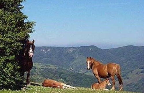 Cuatro habitaciones dobles, tres baños, salón-comedor amplio, cocina y zona de lectura. En el exterior zona verde, espacio para aparcar y barbacoa. Es idéntica a Borda Lenco Behiak y se pueden alquilar juntas para grupos de 16 personas