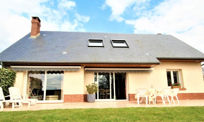 Planta baja: - entrada que da a un gran salón luminoso con vistas a través, - cocina abierta al salón totalmente equipada (lavavajillas, vitrocerámica, cafetera, horno empotrado, tostador...), - Zona de comedor con mesa de comedor con vistas al jardín, - Cómoda sala de estar con sofás, sillones, zona de chimenea y TV de pantalla plana, - 1 dormitorio doble con cama de 160x200cm, - Baño moderno con ducha italiana y secador de pelo, - Aseos separados, 1er piso : - Rellano de acceso a los dormitorios con sofá cama, TV, libros y juegos de mesa, - Cuarto de baño con cabina de ducha, WC y lavadora, - 1 dormitorio con 2 camas individuales de 90x190cm, - 1 dormitorio doble con cama de 140x190cm. Gran terraza con toldo eléctrico orientada al Sur sin caras con muebles de jardín, tumbonas y barbacoa. Calefacción de gasoil: 10€/día si se usa. Pequeña sala de juegos en el garaje con mesa de ping-pong y dardos. Avenida verde a 150m de la casa rural. Marie-Paule y Stéphane se han encargado de organizar una cómoda casa rural en la calma de la campiña normanda donde se pueden admirar los animales de su granja (ganado) en los pastos que rodean el amplio jardín cerrado. Situada en Mesnières-en-Bray, a solo 1h50 de París, déjese tentar por esta casa independiente y su terraza orientada al sur para disfrutar de una barbacoa o relajarse en las tumbonas. Encontrará todas las tiendas locales en el pueblo y puede viajar entre Neufchâtel (quesos AOP), Forges-les-Eaux (Casino, spa) o ir a la costa a solo 30 minutos (Dieppe, Tréport) Alquiler de bicicletas eléctricas sin cargo en el pueblo para pasear por la avenida verde ubicada a 100 metros (junio a octubre) Baie de Somme, Saint Valéry sur Somme, Le Touquet 1 hora por autopista. Gastos de alquiler no incluidos en su alquiler: - calefacción (gasóleo) 12 €/día si se usa, - las tareas domesticas, - ropa de baño y hogar, - madera (más allá del primer brote), - la tasa turística. Dormitorio(s) en planta baja, Chimenea, Jardín cerrado, Televisión, Cuna, Juegos infantiles, Suministro de sábanas, Ropa de hogar, Conexión a Internet, Aparcamiento privado, Lavadora, Lavavajillas, Alquiler de ropa blanca, Cargo limpieza, Animales in situ, Terraza, Jardín, Microondas, TV de pantalla plana, Congelador, Mobiliario jardín, Barbacoa, Mesa de ping-pong, Vivienda unifamiliar. Opción de pago en el sitio: Cargo limpieza: 60€. Kit de ropa de hogar (toallas): 4€. Calefacción extra (precio/día): 12 €. A menos que se indique lo contrario, los servicios como la limpieza, la ropa de cama, las toallas, etc. no están incluidos en el precio de este alquiler. Si se admiten mascotas (información en el anuncio), pueden aplicarse suplementos. Sólo están presentes los equipos específicamente mencionados en este anuncio. Los equipos no mencionados no se consideran presentes.