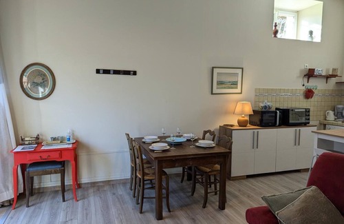 Terraza privada de 16 m², terreno diáfano a compartir con el propietario. Salón con cocina (2 fuegos), un dormitorio con 1 cama de 140 cm, un dormitorio con 2 camas de 90 cm, cuarto de baño con ducha, WC (acceso a los dormitorios por 2 escalones descendentes y acceso al cuarto de ducha y al WC por 4 escalones) . Internet por caja. Calefacción a pagar in situ (según lectura). Se aceptan mascotas previo acuerdo del propietario. Situada en una aldea tranquila a las afueras de Angulema, esta casa rural ofrece, desde la terraza, una vista de la campiña. A esta casa independiente se accede por un camino privado hasta la casa rural y se encuentra cerca de los propietarios.