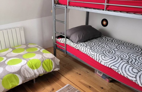 A las puertas de los castillos del Loira (a 60 km de Blois), a solo 45 km de Le Mans ya 28 km de Vendôme, encantadora casa de campo ideal para estancias familiares, 3 parejas y 4 niños. En la planta baja, una gran cocina totalmente equipada con estufa de leña. Amplia terraza luminosa. 1 dormitorio con 1 cama doble y 1 cuna. 1 cuarto de baño adaptado para minusválidos con WC (silla elevadora disponible). 1er nivel: 1 dormitorio con 2 literas. 2do nivel: salón-entrepiso. 1 dormitorio con 1 cama doble y 1 cuna. 1 dormitorio con 1 cama doble WC separado. 1 baño con ducha y 1 lavabo. Accesible desde el segundo nivel, el loft entresuelo accesible por escalera de molinero: 2 camas individuales, zona de capullo. Camas hechas a la llegada, toallas proporcionadas. Calefacción eléctrica (y para el uso del jacuzzi) en suplemento según consumo. Terraza con muebles de jardín, barbacoa, calefacción de terraza (calefacción a gas) y jacuzzi cubierto bajo burbuja, abierta desde mediados de abril hasta principios de octubre. Estufa de leña, leña para los primeros focos disponible. En un anexo, gimnasio (cinta de correr, máquina de remo, bicicletas estáticas, etc.) Amplio jardín con columpio, juegos para niños. Bicicletas eléctricas (2) bajo petición. Terreno de petanca (tú decides traer las bolas). Cargo limpieza 80€ en suplemento y en opción. Presentación del seguro de responsabilidad civil a la llegada a la casa rural. A menos que se indique lo contrario, los servicios como la limpieza, la ropa de cama, las toallas, etc. no están incluidos en el precio de este alquiler. Si se admiten mascotas (información en el anuncio), pueden aplicarse suplementos. Sólo están presentes los equipos específicamente mencionados en este anuncio. Los equipos no mencionados no se consideran presentes.