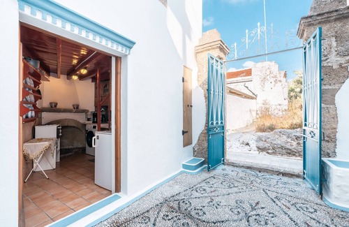 Esta casa se encuentra en el pueblo de Koskinou, en Rodas, y está completamente amueblada con un carácter local único. La cama doble está situada en un tradicional altillo, accesible por unas escaleras sin barandilla. El salón está pavimentado con guijarros blancos y negros que forman un mosaico tradicional, y los muebles antiguos crean un ambiente histórico distintivo. Hay una cocina pequeña pero bien equipada frente a la zona principal de la casa.