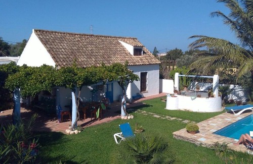 El Cortijo del Huerto forma parte de una granja típicamente andaluza completamente renovada. Escondido entre plantas y árboles, está situado a solo 150 m de la magnífica playa de El Palmar. Cuenta con un salón, una cocina de planta abierta con comedor, un baño y un dormitorio con cama doble en la planta baja, y una galería de camas con dos camas individuales en la planta superior. Está decorado con mucho gusto, en un estilo local moderno y rústico, y totalmente equipado con microondas, lavadora, nevera, equipo de música, etc. Tiene un hermoso jardín cercado con una pequeña piscina para uso exclusivo de los huéspedes. Desde el jardín, tiene hermosas vistas de los alrededores.