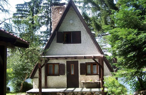 Su casa vacacional2 plantas, 3 habitaciones (de los cuales 2 dormitorios), 45 m², 5 personas. calefacción eléctrica. Calefacción en la chimenea. Entrada cubierta a la antesala con guardarropa. Salón (21 m², habitación de tránsito) con rincón para sentarse, zona de comedor (5 plazas), televisión, chimenea, radio y acceso a la terraza (20 m², cubierto, muebles de jardín, 1 mesa, 6 sillas). Cocina (3 m²) con cocina eléctrica, nevera, microonda, cafetera, tostadora y hervidor eléctrico de agua. Baño (4 m²) con ducha, 1 lavabo, inodoro, secador de pelo y ventana. Dormitorio (8 m²) con 2 camas individuales y rincón para sentarse. Dormitorio (16 m²) con 1 cama doble, 1 cama individual, rincón para sentarse y acceso al balcón.Otras instalaciones: plancha, cuna y trona. Recepción televisiva vía satélite. En la casa vacacional está prohibido fumar. Animal domésticopermitido, EUR 30.00/Animal doméstico y semana. UbicaciónFrymburk, barrio Vřesná, 708 msnm. La casa vacacional rústica (año de construcción 1975, en el año 2005 renovado) se encuentra separada, en el bosque y en la orilla y en una tranquila y una soleada en una ladera. Vista de la propiedad sobre el lago. Llegada y salida tendrá lugar el domingo.