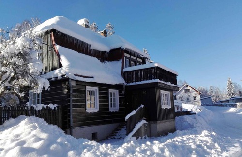 Casa vacacional con horno-chimenea en la ladera Su alojamiento turísticoLa casa vacacional está rodeada por un cerrado terreno de jardín o (1000 m²). El propietario no vive en la casa o en la propiedad. El terreno está rodeado de una valla. Para uso privado a su disposición: terraza, parque infantil, andamio, césped, muebles de jardín, barbacoa y zona de hogueras. Cerveza de grifo (previa cita ofrece cerveza de barril - cerveza checa y local)