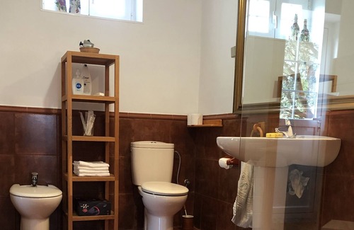 Gran espacio con piscina privada. Casa independiente, de aproximadamente 130 metros. Con camas para 6 Huéspedes más 1 supletoria. Extrema tranquilidad y limpieza, al aire libre en el campo. Finca totalmente cerrada, en su delimitación. Grandes arboles y espacio. Aparcamientos libres. Terrazas varias. Barbacoa. Cuna, trona, cambiador para Bebes. Muy cercano, a centros comerciales y mercados etc. Restaurantes y pueblos con bares de tapas, etc. Incluso es posible, esquiar nieve artificial, en pleno verano. Bosques para pasear. Todos los posibles útiles de cocina y demás objetos disponibles.
