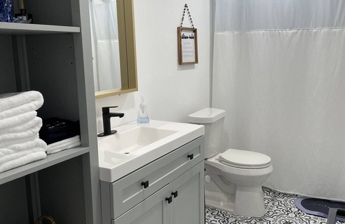Este alojamiento de 2 dormitorios y 1 baño cuenta con una sala de estar y aire acondicionado. Conéctate al wifi gratis, o relájate frente a un Smart TV. También hay un reproductor estéreo. El cuarto de baño incluye un secador de pelo, toallas y papel higiénico. Prepara una comida casera en la cocina, equipada con horno, placa de cocina y frigorífico, además de cafetera y tetera, hervidor eléctrico y máquina de hielo. Podrás viajar con poco equipaje, porque tendrás una lavadora y una secadora a tu disposición. Otras comodidades incluyen ropa de cama, una tabla de planchar, sistema de calefacción y una mesa de comedor.