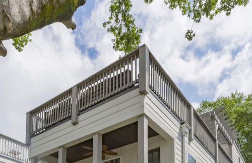 Disfruta de salir al porche del dormitorio principal del segundo piso con tu café. Cada nivel de la casa tiene un porche para sentarse y disfrutar.