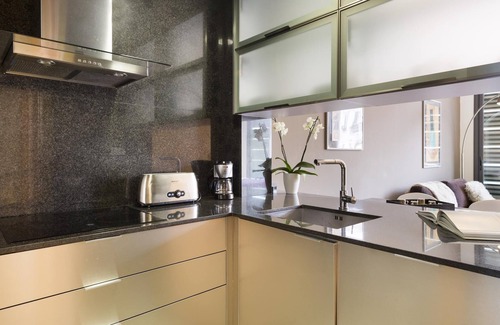 Este luminoso apartamento fue diseñado para combinar modernidad y calidad. En la entrada, encontrará la cocina totalmente equipada con todos los utensilios para que pueda preparar sus propias comidas durante su estancia si así lo desea.