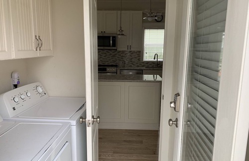 La casa incluye una hermosa sala de estar en el primer piso con pantalla plana / DVD de 43 "y se abre al área de comedor, al porche de comedor lateral y a la alegre cocina completamente equipada con todo lo que necesitará. El primer piso también incluye una habitación queen y baño completo, ideal para huéspedes que necesitan evitar las escaleras, y una sala de lavandería con lavadora y secadora para su conveniencia.