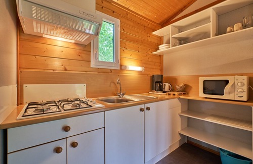 Los huéspedes de este chalet disfrutan de acceso a una zona exterior compartida con terraza cubierta, una gran piscina compartida vigilada y de acceso gratuito. Además, el camping cuenta con pistas de voleibol y petanca, parque infantil, barbacoas y bar.