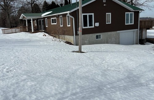 ( voir le francais ci-bas) Exquisite accommodation bordered on the north by the magnificent St.Lawrence, and on the south by the Lac St-Francois National Wildlife Reserve, a Ramsar (UNESCO) internationally recognized wetland. Ideal for night skywatchers, birdwatchers, hot tub lovers and fishers. Two well equiped kitchens, 2 full bathrooms plus ensuite powder room off the master bedroom make it ideal for multigenerational gatherings or for small business retreats. Ideal location to celebrate a wedding or a special birthday event. For larger retreats (12-15 people ), additional accomodation is available in adjacent cottages on the property. Walking trails on the wildlife reserve are accessible on foot. Canoe, kayak and paddle boards are available on the property on request. In the summer, months, the National wildlife reserve offers guided canoe trips on the St. Lawrence, including guided tours to Thompson Island, a First Nation-operated site where you will be exposed to a unique introduction to indigenous culture. View a potential 200 migratory bird species, including 5 species of heron, the regal Sandhill Crane, egrets, osprey who actively fish on the bay in front of the cottage, and bald eagles. Foxes, rabbits, otters, beaver, mink and muskrats are commonly seen on the shore and along the waterfront. Deer may occasionally are seen swimming out to the the islands. A rich wildlfe is found in the archipelago of marshes that make the marine environment unique. Several rare species of turtle are found on the reserve. Plant biologists will also find species of interest that are unique in Eastern Canada. In season, enjoy the small cross country ski trail on the property. Lake St. Francis is reknowed as one of the best muskie fishing lakes in North America, and is the location of competitions each year. A boat launch is available on the property and a stall in a boathouse is available on request. The cottage itself (Beauly) was designed by a family member who held a Bachelor of Fine Arts degree. Several of the artists' works can be seen in the cottage. The beauty of the space has been described by a recent guest as ‘like a poem’. The expansive living area was designed around a finely crafted pine cabin and this design feature resonates throughout the space. The 25 M (80 ft) deck provides panoramic views of the river where individuals or groups can meditate, practice yoga or tai-chi or simply enjoy the views of the river while heron patiently fish by the shore. Three foot-long carp can be seen along the waterfront in spring breeding season. Dundee municipality has the lowest number of units of light pollution in southern Québec, thus skywatching from the hot tub is a uniquely rewarding experience. On the property, you will visit an original well preserved one-room log cabin that was the first home of Highland settlers in the early 19th century. Other historic buildings can be viewe on the Point. The property is located in Dundee, one of the most pastoral farming communities in souther Québec and 'the North Country', It is ideal for bicycling, either for an hour of for day trips to visit other sites of beauty in the neighbourhood. A canoe and two kayaks are avaiable on request, as well as paddleboards. An adjacent, dedicated site on the property is provided for those who wish to enjoy a camp fire. We are in the process of developing a walking path through the 10 acre wooded are on out property which is home to rabbits, foxes, owls and deer, as well as a great number of small birds.