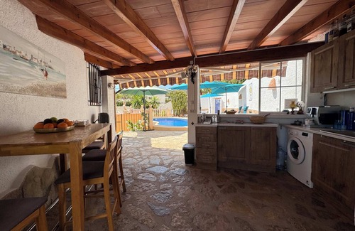 Justo al lado de la piscina hay una maravillosa cocina de verano (con lavavajillas y lavadora) y una zona de barbacoa adicional parrilla de carbon y gas.