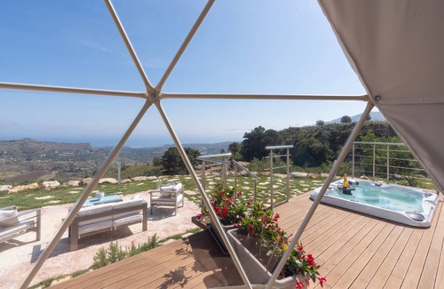 Dome on the hill es una lujosa cúpula geodésica situada en lo alto de una colina con impresionantes vistas panorámicas del golfo de Castellammare y la campiña circundante, ideal para rejuvenecer de la ajetreada vida cotidiana.