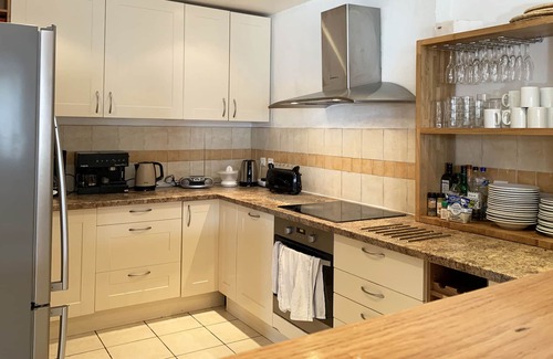 Prepara una comida casera en la cocina, equipada con horno, frigorífico y lavavajillas, además de cafetera y tetera, hervidor eléctrico y máquina de hielo. Conéctate al wifi, o relájate frente a televisión. El cuarto de baño incluye un secador de pelo, toallas y papel higiénico. Otras comodidades de este alojamiento de 8 dormitorios y 10 baños incluyen ropa de cama, calefacción y una mesa de comedor.