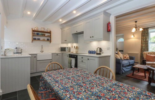 Amenities: Electric radiators. Oven, hob, microwave, fridge/freezer, washing machine, slimline dishwasher. Smart TV, WiFi. Fuel and power inc. in rent. Bed linen and towels inc. in rent. Highchair and travel cot available. Roadside parking. Enclosed rear patio with furniture. One well-behaved pet welcome (downstairs only). Sorry, no smoking or vaping. Shop 0.3 miles, pub 0.4 miles. Note: Stream at the back of garden, children and pets must be supervised at all times