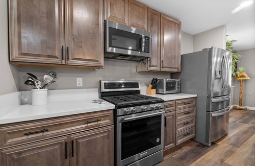 Esta casa de vacaciones de 3 dormitorios y 2 baños está ubicado en Big Bear City, una ubicación ideal para explorar los alrededores. A los amantes de la naturaleza y el aire libre les encantará estar a 3min en coche de Big Bear Lake y a 3min de Stanfield Marsh Wildlife and Waterfowl Preserve. Estarás a 3min en coche de Compañía de teatro Community Arts Theater Society y a 4min también en coche de Parque conmemorativo Gold Mountain.