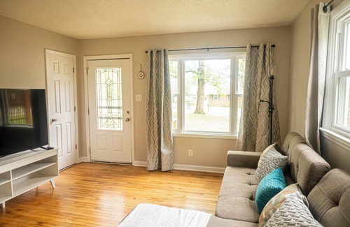 Newly renovated 3-bedroom, 1-bath home in Greensboro! Conveniently located near Cone Health Moses Cone Hospital and UNC Greensboro, this retreat features a king bed and 2 queen beds for ultimate comfort. Enjoy amenities like 65 inch TV, WiFi, and a work station. With all the essentials provided, it’s the perfect spot for a relaxing stay.