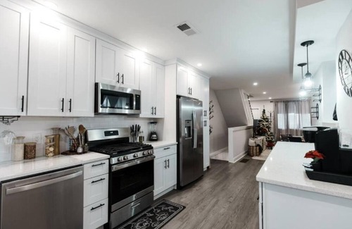 Charming 3-bedroom Retreat in Philadelphia Se encuentra en South Philadelphia. Charming 3-bedroom Retreat in Philadelphia ofrece alojamiento, con Cocina, Lavandería, Aire acondicionado, Entre otras comodidades. Estas características Casa Cocina, Lavandería, Aire acondicionado, Para que su estadía sea cómoda.