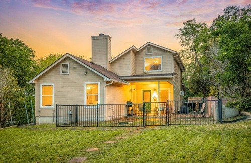 Your San Marcos adventure begins at this marvelous 4-bedroom, 2.5 bathroom house. With 1 king bed, 3 queen beds, and a comfy sofa bed, this cozy retreat offers a great relaxing getaway nestled on 3/4 acres of land. The house features hardwood and tile floors throughout, granite counter tops, breakfast bar and stainless appliances in the kitchen, and 3 full size couches in the main living area. Enjoy the large backyard, featuring beautiful mature oak trees, a fenced in back patio area, and you just might spot a few deer out back. Kickback, relax, and enjoy everything San Marcos and our house has to offer. Close to all tubing spots, Schlitterbahn, Gruene, and outlet mall!