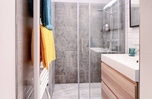 La cocina está equipada con horno, placa de cocina y frigorífico, además de cafetera y tetera, hervidor eléctrico y microondas. Conéctate al wifi gratis, o relájate frente a un Smart TV. El cuarto de baño incluye un secador de pelo, toallas y papel higiénico. Y no tendrás que llevarte ropa de más, porque podrás aprovechar la lavadora y la secadora. Otras comodidades de este alojamiento de 1 dormitorio y 1.5 baños incluyen ropa de cama, un escritorio, una tabla de planchar y calefacción.