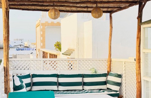 Kasbah al-Bahr est une maison marocaine 100 % traditionnelle au cœur de la médina d'Essaouira, à quelques pas de l'océan. Profitez du bois sculpté à la main, des zelliges et d'une cour paisible. Détendez-vous sur la terrasse sur le toit avec vue panoramique sur la mer, sirotez du thé à la menthe pendant que la brise de l'Atlantique passe, et explorez les souks, les rues bleues et le port. Une retraite sereine et authentique pour les couples, les amis ou les familles.