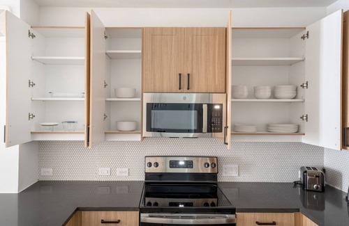 Este alojamiento de 1 dormitorio y 1 baño cuenta con una sala de estar y aire acondicionado. El cuarto de baño incluye un secador de pelo y toallas. La cocina está equipada con horno, placa de cocina y frigorífico, además de cafetera y tetera, microondas y utensilios de cocina. Y gracias a la lavadora y la secadora, podrás viajar con poco equipaje.