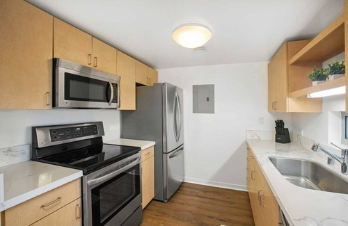 Este alojamiento de 1 dormitorio y 1 baño cuenta con una sala de estar y aire acondicionado. El cuarto de baño incluye un secador de pelo y toallas. La cocina está equipada con horno, placa de cocina y frigorífico, además de cafetera y tetera, microondas y utensilios de cocina. Y como podrás aprovechar la lavadora y la secadora, no te hará falta llevar mucho equipaje.