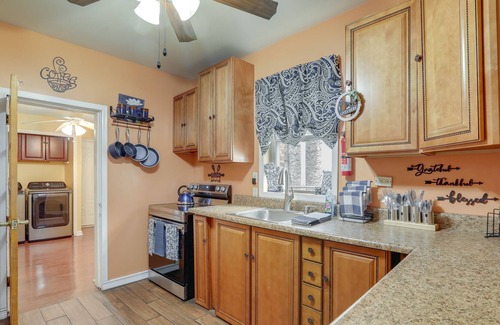 Al instalarte en este alojamiento de 3 dormitorios y 1.5 baños, encontrarás un comedor, chimenea, aire acondicionado y ventilador de techo. El cuarto de baño incluye un secador de pelo, artículos de higiene personal gratuitos y toallas. Prepara una comida casera en la cocina, equipada con placa de cocina y frigorífico, además de cafetera y tetera, máquina de hielo y microondas.