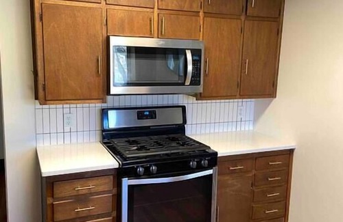 Este alojamiento de 4 dormitorios y 1.5 baños cuenta con aire acondicionado, escritorio y oficinas. La cocina está equipada con horno, placa de cocina y frigorífico, además de cafetera y tetera, microondas y utensilios de cocina. Podrás viajar con poco equipaje, porque tendrás una lavadora y una secadora a tu disposición.
