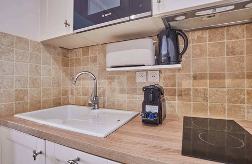 - Una cocina totalmente equipada (placa, microondas, tostadora, cafetera Nespresso, lavadora)