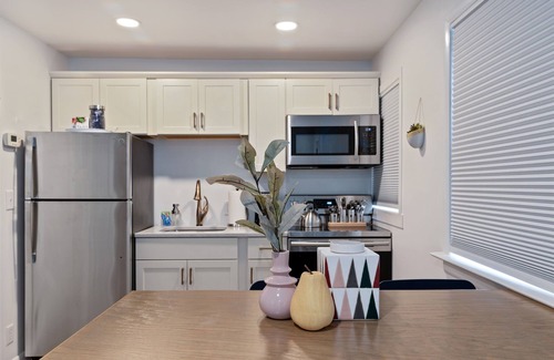 Al instalarte en este alojamiento de 1 dormitorio y 1 baño, encontrarás una sala de estar, camas viscoelásticas, un sofá cama y un diván cama. Conéctate al wifi gratis, o relájate frente a un Smart TV (dispone de servicios de streaming). También hay un altavoz inteligente. El cuarto de baño incluye un secador de pelo, toallas y papel higiénico. Prepara una comida casera en la cocina, equipada con horno, placa de cocina y frigorífico, además de cafetera y tetera, microondas y utensilios de cocina. Y como hay una lavandería en los alrededores, no necesitarás llevarte mucho equipaje. Otras comodidades incluyen ropa de cama, un escritorio, una tabla de planchar y aire acondicionado.