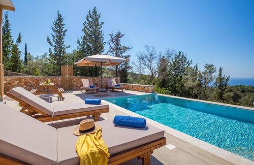 No sólo es una posición maravillosa a 550m de distancia a pie de las tiendas y tabernas, pero también hay magníficas vistas al mar para disfrutar desde las habitaciones, terrazas y piscina desbordante privada. Sólo un corto trayecto en coche te lleva a la hermosa costa y las populares playas de Gialo Skala (1,8 km) y Pefkouli (3,7 km).
