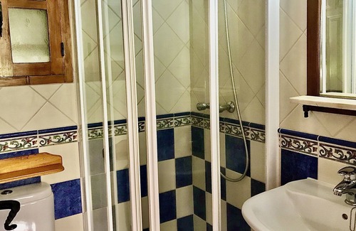 La encantadora cabaña de bosque (1 dormitorio, 1 baño) para dormir 2 está situada en el Parque Natural de Sierra Bermeja y se encuentra en una cresta rocosa en medio de árboles de olivo y roble, acceso privado y estacionamiento. El antiguo círculo de trilla de piedra hace una terraza única con vistas a las montañas boscosas, los valles y el río. Gran piscina infinita con terraza.