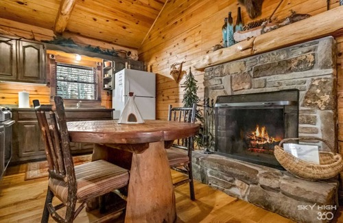 'El Cherokee' es una cabaña de lujo en las hermosas montañas de Ozark de Eureka Springs, Arkansas. Un santuario le espera en El Cherokee. Escucha los pinos susurrantes en su refugio privado, mientras disfruta de la cabina temática nativa, abra techos abovedados y formaciones rocosas. El Cherokee ofrece una cocina totalmente equipada, salón con chimenea de leña de piedra, TV con Dish Network y DVD, wifi, abierto dormitorio de planta baja con cama king size y baño con bañera de hidromasaje y ducha independiente viviendo. El Cherokee tiene una cubierta cubierta / porche, parrilla de carbón y está rodeado de hermosas formaciones rocosas.