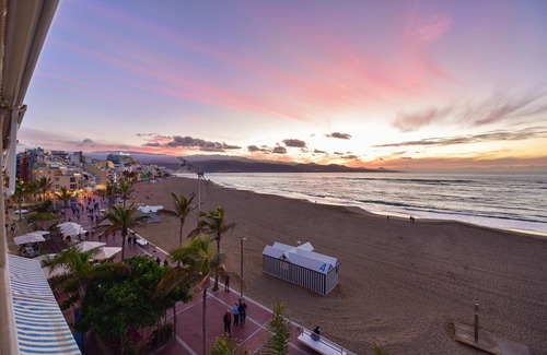 Este acogedor apartamento en la ciudad de Las Palmas se encuentra en primera línea de playa y con acceso inmediato al paseo de Las Canteras.