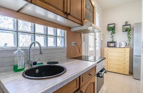 La cocina está equipada con horno, placa de cocina y frigorífico, además de cafetera y tetera, microondas y utensilios de cocina. Y como hay acceso a una lavandería, no necesitarás llevarte mucho equipaje.