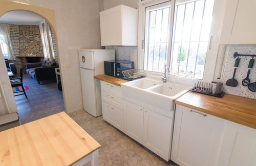 La villa Papallona se encuentra en una calle tranquila con tráfico local. Podra aparcar su coche en esta calle. Villa Papallona se encuentra en un barrio tranquilo. La distancia de la villa hasta la playa es 7000 metros. Villa Papallona esta construida a pie de calle . La entrada esta en la primera planta. Villa Papallona es un chalé individual con piscina privada. Al entrar por la puerta principal de la vivienda encontrará la sala de estar, la cocina , 2 dormitorios y 1 cuarto de baño. En la primera palnta se encuentran 2 dormitorios y 1 cuarto de baño. La decoración de Papallona es práctica y funcional. Villa Papallona dispone de amplias vistas de la urbanización. Villa Papallona tiene una superficie construida de 150 metros. Encontrará la piscina en parte delantera del chalé. Aquí podra disfrutar del sol y de la vida al aire libre. La villa Papallona tiene una barbacoa de piedra . Esta vivienda de vacaciones es muy apropiada para las familias .