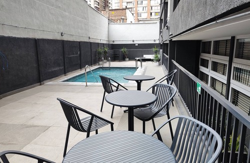 No, esta Downtown Santiago condominio no tiene piscina. Vea los detalles sobre la disponibilidad de piscina interior o privada y otras instalaciones.